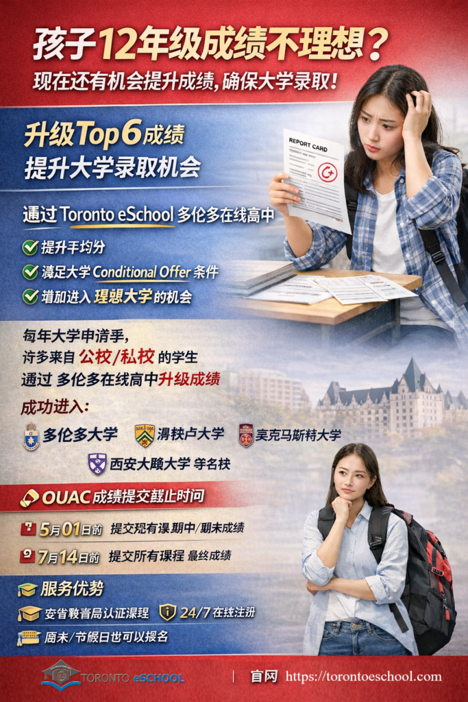 每年大学申请季,许多来自 公校 / 私校 的学生, 通过多伦多在线高中升级成绩